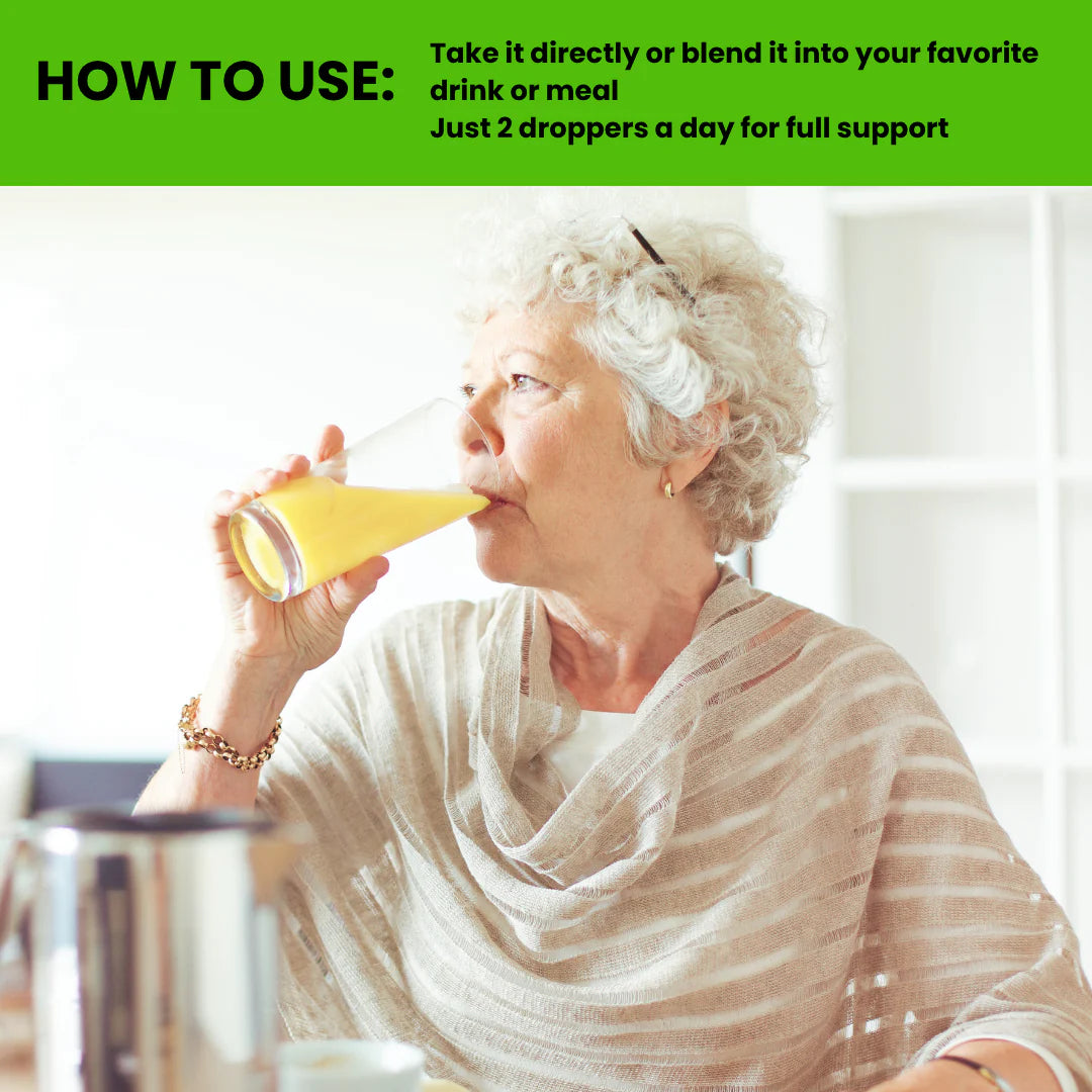Take 2 full droppers daily. For best absorption, use on an empty stomach or mix with water or juice.