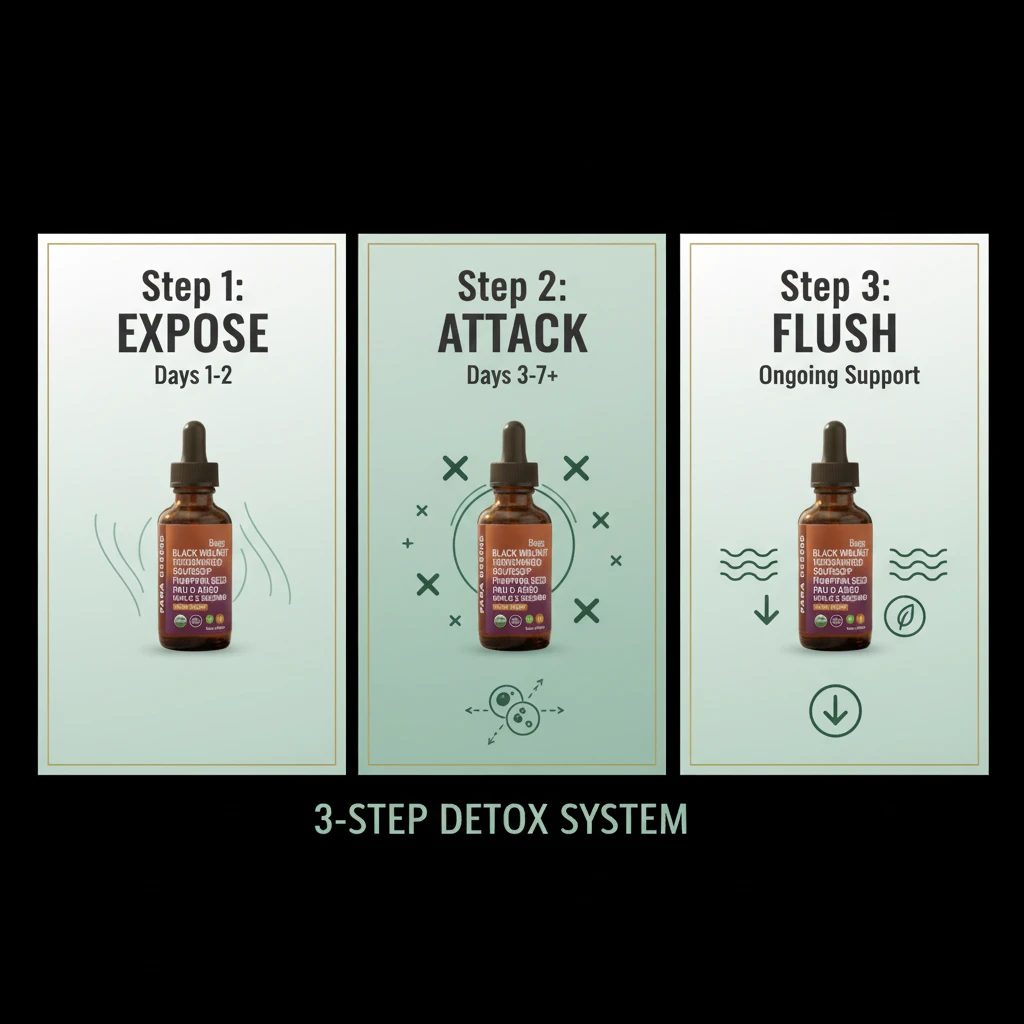 It has a bold herbal flavor with natural bitterness from the Black Walnut and Wormwood—balanced by subtle earthiness from clove, garlic, and pumpkin seed. No sugar or sweeteners—just potent plant power.